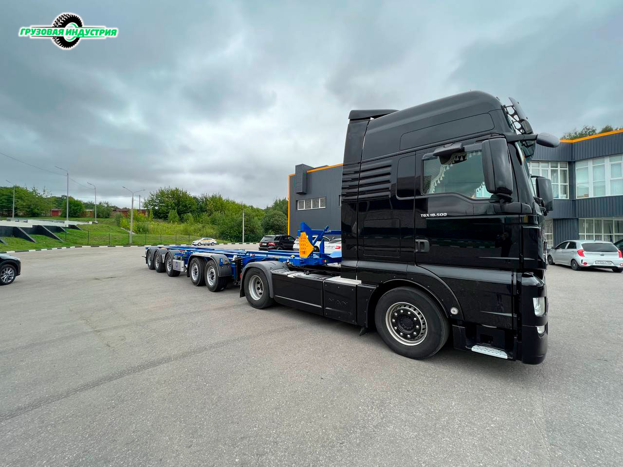 Отгрузка универсального полуприцепа тандемного контейнеровоза Meusburger Новтрак SW-570 в Москву